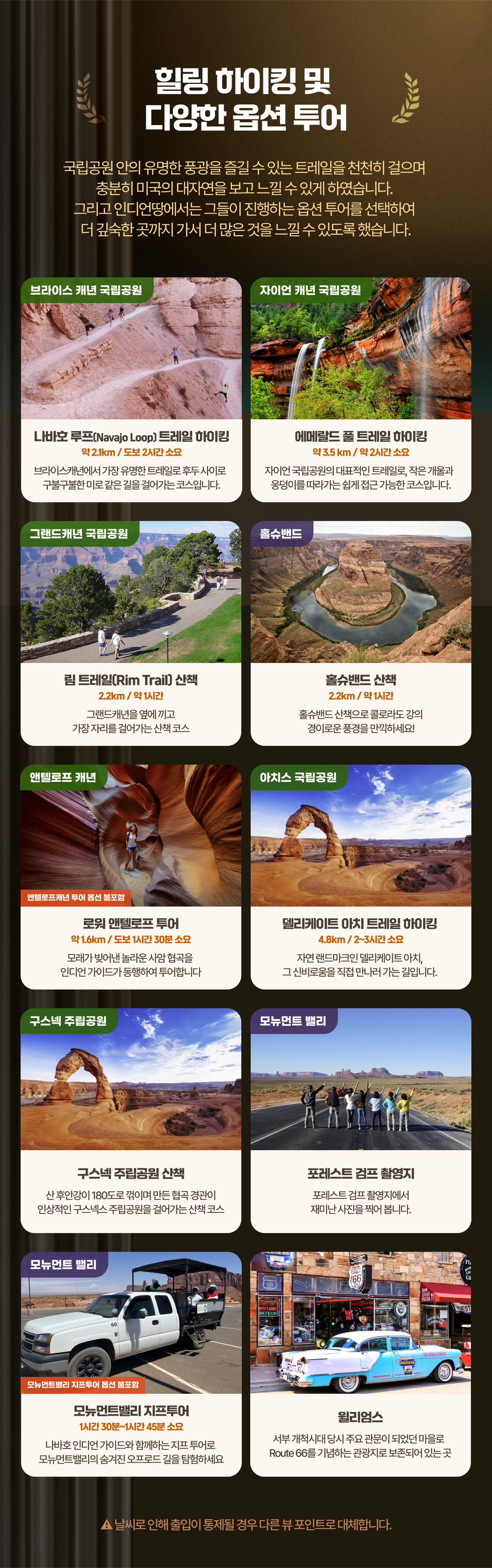 8. 엔텔롭캐년은 비가 오거나 현지 방문객 상황에 따라 엔텔롭캐년 어퍼캐년, 로우캐년, 엑스캐년, 씨크릿캐년 등으로 유동성있게 진행 할수 있습니다.